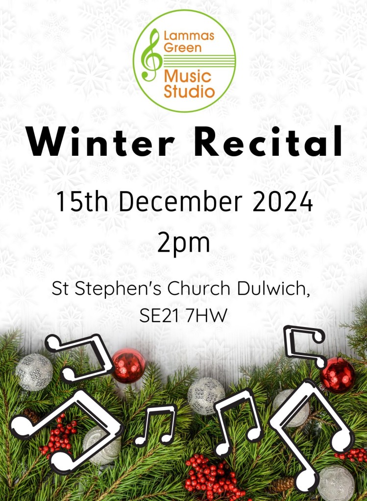 Winter Recital at St Stephen’s Church Dulwich, 15th December 2024, 2pm